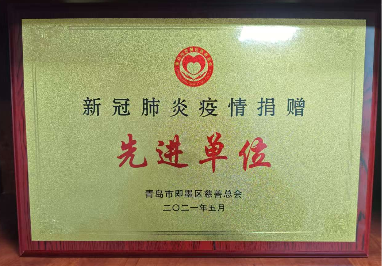堅(jiān)納森(青島)機(jī)械有限公司榮獲“新冠肺炎疫情捐贈(zèng)先進(jìn)單位”榮譽(yù)稱(chēng)號(hào)